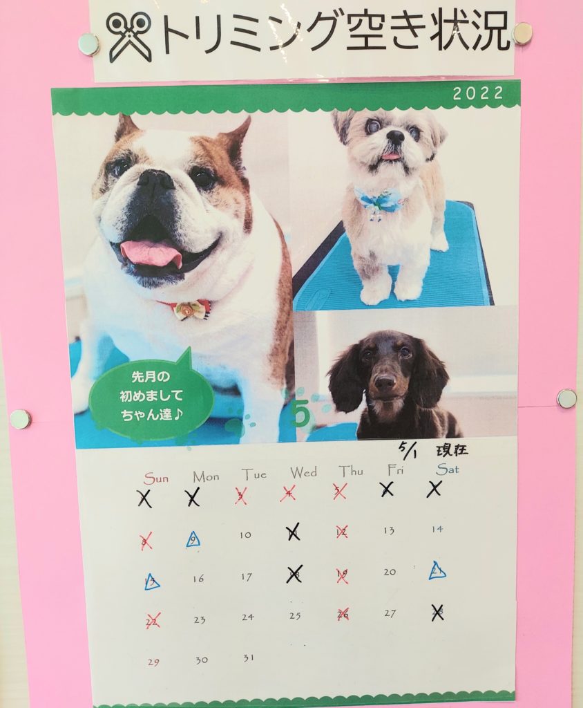 5月に入りましたが、トリミング掲示板の「空き状況」のご案内ポスターについて少し報告があります!