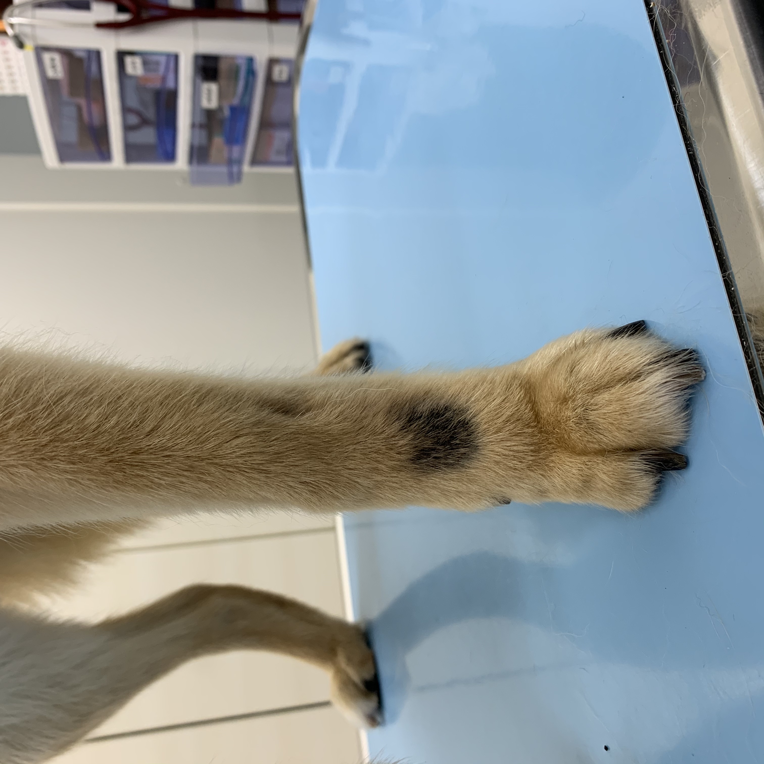 足の毛を咬んでしまうわんちゃんなどは、両方のケアをしています。